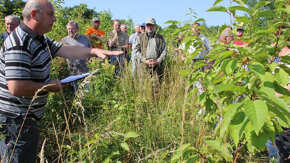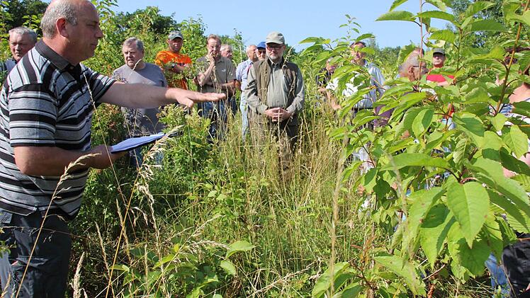 Aus seinen Gefühlsregungen machte der Forstwirtschaftsmeister keinen Hehl. So erinnerte er sich noch an den ersten Besuch: "Das war ein kahler Bewuchs und aus der einen Hecke sind noch vier Rehe rausgesprungen." Schlechte Voraussetzungen für eine Erstaufforstung. Doch acht Jahre später zeigen sich erste Erfolge, die Schmitt auch wortreich beschrieb.