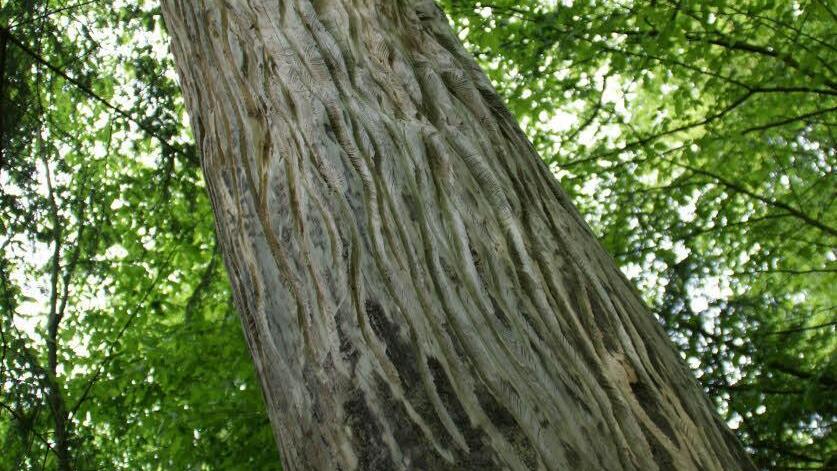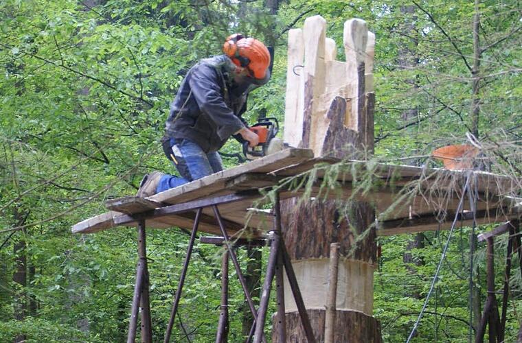 Die Bäume wurden von der Forstverwaltung für ihre künstlerische Transformation auf einer Höhe von zwei bis zweieinhalb Metern gefällt. Sie sollten natürlich möglichst nahe am Weg stehen, damit ergab sich für die Künstler manchmal das Problem, an einer Böschung zu arbeiten.