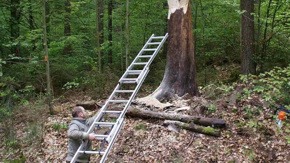 Vor wenigen Tagen formte Florian Tully noch Sandskulpturen auf Rügen und Usedom, jetzt steht er im Steigerwald bei Theinheim und formt einen Wildschweinkopf aus Holz. Auf zwei Metern Baumstamm will er die Sage vom Wildschwein und der Glocke erzählen. Mit drei Bildhauer-Freunden nahm Tully die Einladung von Gastwirt Michael Bayer zum Künstlersymposium in Theinheim an.