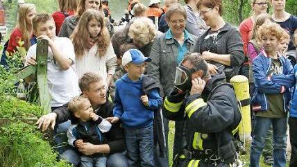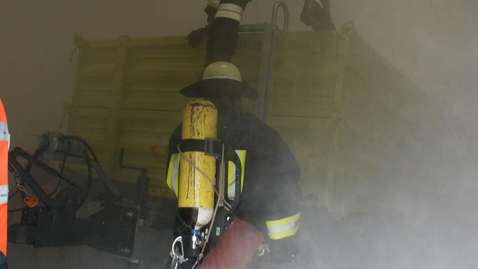 Bei der Großübung am Samstag kam das neue Fahrzeug allerdings noch nicht zum Einsatz, hier zeigten die Atemschutzgeräteträger aus Untersteinbach, wie wichtig diese Ausstattung ist. Angenommenes Brandobjekt war eine Lagerhalle am Ortsrand, in der sich neben mehreren vermissten Personen auch einige Gasflaschen befanden. Zahlreiche Zuschauer fanden sich ein, um den Wehrleuten aus ganz Rauhenebrach und den oberfränkischen Nachbarorten Schönbrunn, Halbersdorf und Burgwindheim über die Schulter zu schauen. Vor allem für die Jugendfeuerwehrleute und die Kinder des Ortes war der Einsatz spannend.