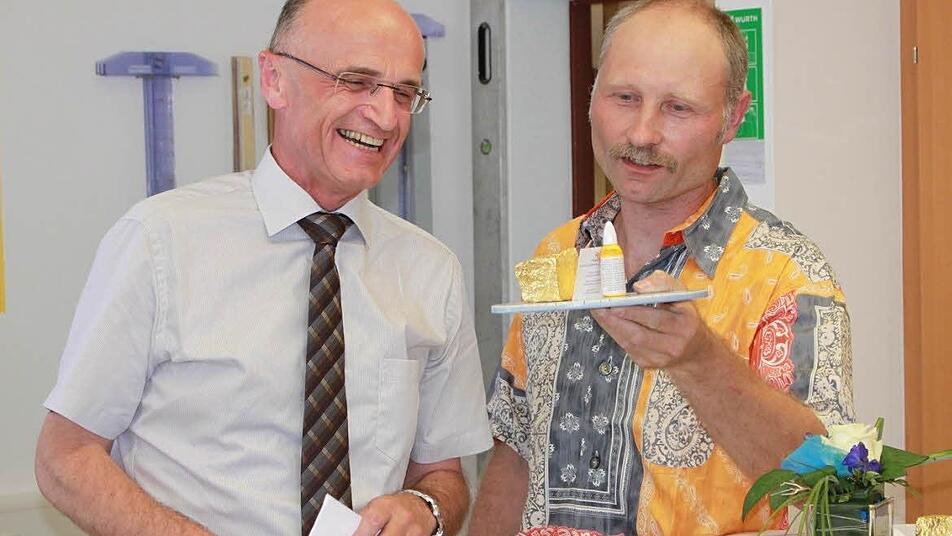 Und dass Handwerk durchaus goldenen Boden haben kann, das zeigte Michael Ott dem Landrat. Denn er bedankte sich bei Schneider mit einem vergoldeten Stein aus Maroldsweisach, der Heimatgemeinde des Landrats.