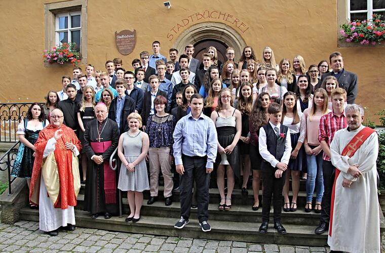 Aus der Pfarreiengemeinschaft "St. Kilian und Weggefährten" in Pfarrweisach und der Pfarreiengemeinschaft "Gemeinsam unterwegs" aus Ebern, Unterpreppach und Jesserndorf, empfingen am Mittwoch 61 Jugendliche die Firmung durch Weihbischof Ulrich Boom. Besonders war an diesem Tag, dass es ein christlicher Feiertag ist, der an den Märtyrertod der beiden Missionare unter Kaiser Nero in Rom erinnert.