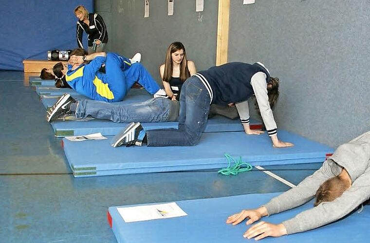 Zwei Wochen intensiver Vorbereitung hatten die Schüler Schüler in den Projekttag geteckt. Dann standen der Fitness-Check und die Übungen für den Kraft-Ausdauer-Zirkel, der einen Schwerpunkt auf eine gute Haltung und damit einen gesunden Rücken legte. Unter der Anleitung von Henriette Dornberger ging es vom Seilspringen zu den Sit-Ups - und auch einen Einblick in Yoga-Übungen gab es, denn auch geistige Entspannung gehört zu einem gesunden Leben.
