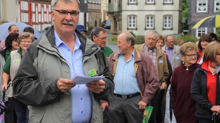 In Ibind wurde das ehemalige Rathaus mit dem Glockenturm und die Turmuhr am Dachreiter von Michael Hofmann vorgestellt. Markus Schorn erläuterte die Sanierung des Dorfplatzes mit 600 freiwilligen Arbeitsstunden des 180 Einwohner zählenden Ortes. Der 80-jährige Heinz Michel, letzter Bürgermeister der ehemals selbstständigen Gemeinde Ibind, blickte am Friedhof weit zurück und erläuterte wie dieser geplant und baulich umgesetzt wurde. "Ich habe die Bretter oben am Leichenhaus noch selber angebracht", sagte er.