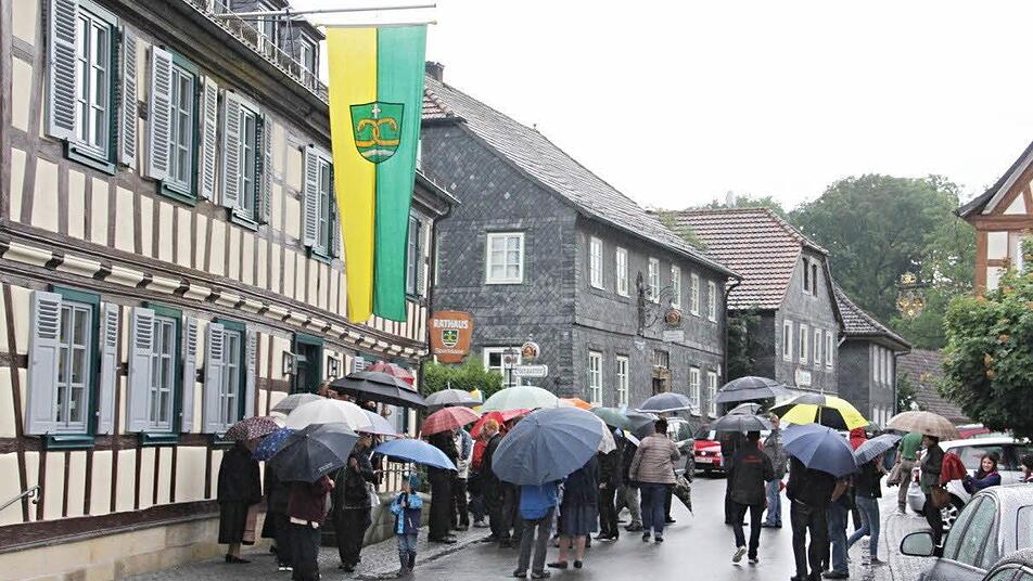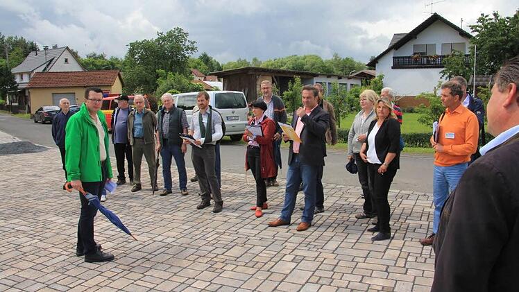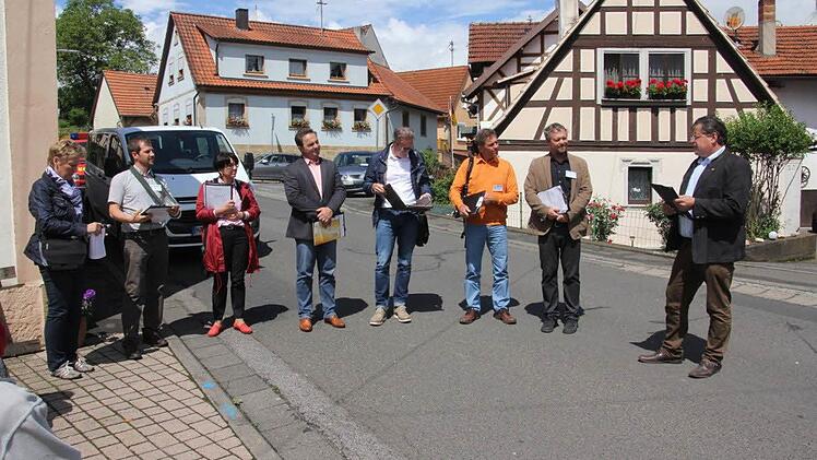 Bei einem Spaziergang informierten die "Köpfe der Dorfgemeinschaft" mit demn Bürgermeistern Helmut Dietz, Siegfried Kirchner und Dieter Reisenweber und den Gemeinderäten Sandra Schramm und Norbert Scheichenost über die neu gestalteten Projekte und örtlichen Gegebenheiten.