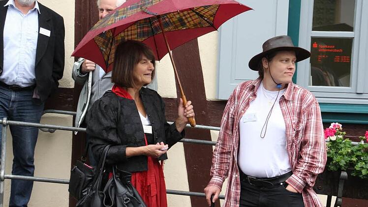 Überrascht vom bombastischen Empfang waren die Jurymitglieder in Untermerzbach, wo sie, zunächst bei strömenden Regen von einer großen Anzahl von Bürgerinnen und Bürgern und Vertreter von Vereinen in Trikots, Uniform und Trachten erwartet wurden. Zweiter Bürgermeister Siegfried Kirchner erinnertedaran, dass sich innerhalb der letzten 15 Monate die Dorfgemeinschaft mit ihren Helfern mächtig ins Zeug gelegt hatte.