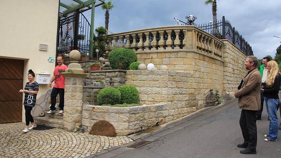 Rainer Korn stellte an seinem Privatanwesen eine imposante Sandsteinmauer vor und Uwe Rädlein erklärte stolz, wie die Ibinder mit Hilfe der Gemeinde Burgpreppach die Kellermauer am Ortsausgang in Richtung Hofheim saniert haben.