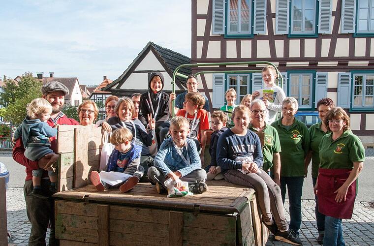 Dass es gar nicht so einfach ist, eine möglichst lange Apfelschale vom Apfel zu schälen, erlebten dann nicht nur die elf Kinder, die der Einladung gefolgt waren. Auch manch Erwachsener verzweifelte an brüchigen Schälstellen und Schalen, die einfach nicht so lang werden wollten wie sie sollten. Den längsten Atem und damit auch die längste Schale bewies am Ende Lukas Schmitt. Nach zehn geschälten Äpfeln konnte er stolz eine Apfelschale mit einer Länge von einem Meter und fünf Zentimeter präsentieren und durfte sich über einen Einkaufsgutschein für Bastelmaterialien als Preis freuen.