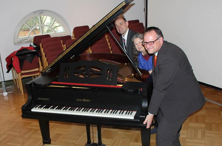 Die Eberner Musikschule wünscht sich ein Instrument, das der VHS gehört und seit Jahrzehnten im Saal der Raiffeisen-Volksbank steht. Dort passt es aber nicht durchs Treppenhaus, das jüngst erst umgebaut undmit einer Sicherheitsschleuse versehen wurde.