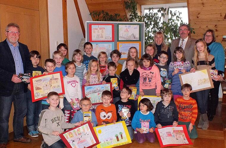 Kinder sehen vieles anders als Erwachsene. Nicht zuletzt deshalb fand in den acht Klassen der Grundschule Zeil/ Sand, die im Schulgebäude Sand unterrichtet werden, ein Malwettbewerb zum Thema "875 Jahre Sand" statt. Die besten unter den insgesamt 200 Arbeiten wurden nun prämiert.