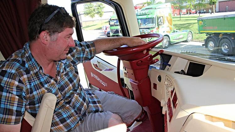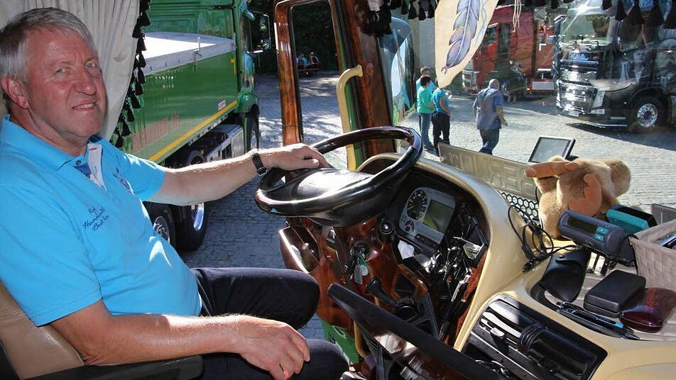 "Solches Leder", sagt sein Truckerkollege Bernd Eichhorn aus Birstein in Hessen, "wird im Bentley verbaut." Der 64-jährige Unternehmer hat in seinem Fuhrbetrieb 60 Lastwagen laufen, mit zwei seiner Prachtstücke sind er und sein Fahrer Bernd Lein die 180 Kilometer von Birstein nach Ebern angereist.