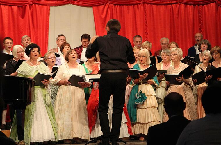 Wieder aus den Schränken geholt Dies wäre der Anlass gewesen, mit fleißigen Näherinnen selbst zu solchen herrlichen Kleidern zu kommen. Und diese Kleider hatte man wieder aus den Schränken gezogen. Sie passten genau zu den nächsten Chorsätzen aus "Figaros Hochzeit", der "Zauberflöte" oder dem "Zar und Zimmermann".