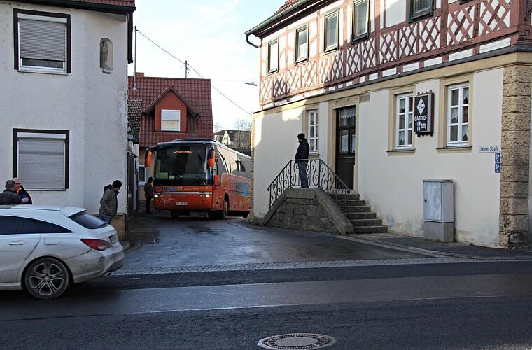 Vor Ort erläuterte der Bürgermeister, dass aufgrund der beengten Verhältnisse an der betreffenden Einfahrt ein größeres Fahrzeug die gesamte B 279 versperrt, wenn es in dort einbiegen möchte. Wie sich die Situation in der Praxis darstellt, konnten die Mitglieder des Gremiums, der Geschäftsleiter der Verwaltungsgemeinschaft Ebern, Ernst Hassler, und Bauamtsleiter Martin Lang bei einer Demonstration mit dem Bus sehen.