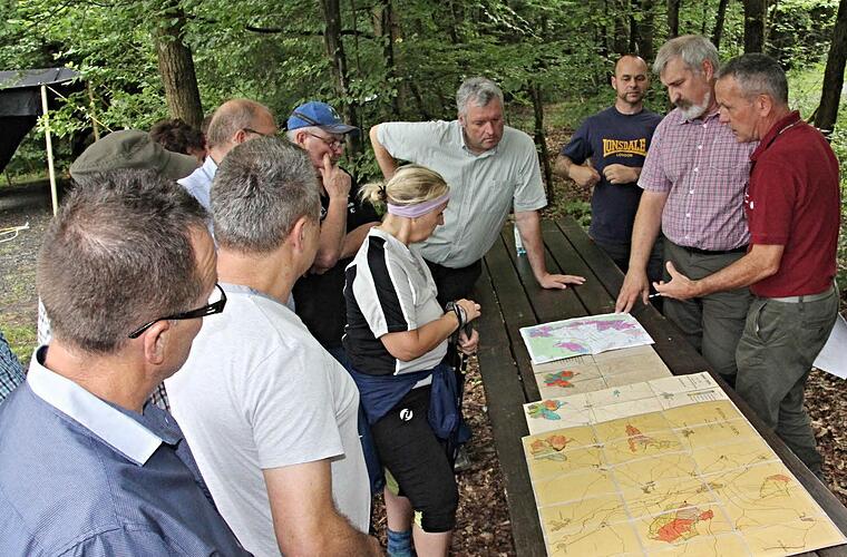 Hahn und Gnannt skizzierten anhand von Kartenmaterial die Entwicklung des Walddistrikts "Wüstenhof" für den Zeitraum seit 1950. Dieser habe eine Fläche von 95 Quadratkilometer und sei ein naturbelassener nadelholzbetonter Mischwald im Bereich des Eichelbaches. "Hier haben wir auch eine Eigenjagd", sagte Gnannt.