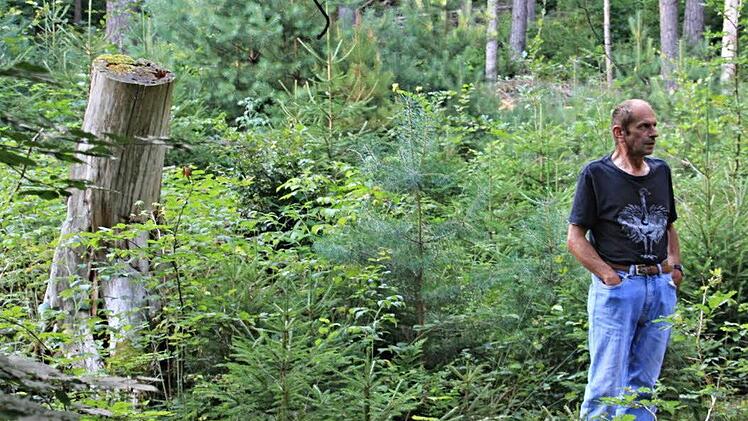 Dort, im dem relativ feuchten Gebiet, seien mehrere Biotope angelegt, wo sich auch "größere Vögel" aufhalten und Nahrung finden würden. In weit zurückliegenden Jahren habe das Gebiet für die Wasserversorgung von Reutersbrunn eine wesentliche Rolle gespielt. Der Bereich "Erlenhutwiesen" war bis 1970 Wiesengelände, erläuterte Gnannt. Danach wurde die Fläche mit Fichten und Erlen aufgeforstet. Fichten, so berichtete er, habe man gepflanzt, um Christbäume und Schmuckreiser zu bekommen. "Heute ist der Bestand 45 Jahre alt", sagte Gnannt und im sogenannten "Erlenbruchwald" erreichten die Bäume ein "gigantisches Wachstum", was an den teils stattlichen Stämmen zu sehen war. Es sei "etwas ganz Naturnahes" entstanden.