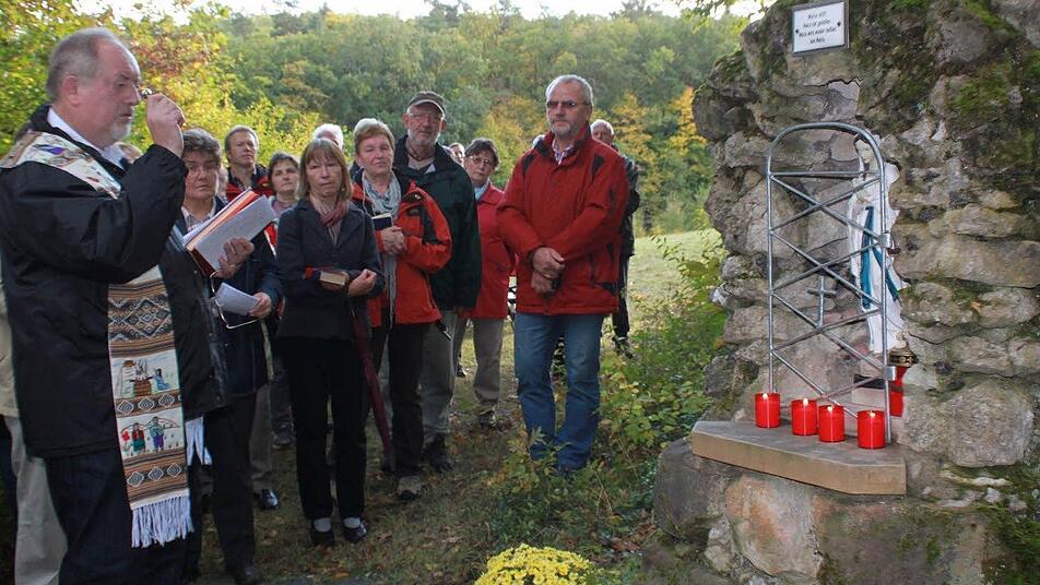 Und aus Dankbarkeit, auch über seine glückliche Heimkehr, hat er dann diese Grotte erbaut. Davon hat am Sonntag, bei der offiziellen Segnung durch Stadtpfarrer Pater Rudolf Theiler, Rudi Kaspar berichtet. In den Jahren nach der Erbauung soll die Marienstatue in der Grotte sogar wenigstens eine wundersame Heilung bewirkt haben. "Eine Reutersbrunnerin, die an Wassersucht erkrankt war, ging ein Jahr lang, jeden Tag barfuß zur Grotte, betete dort und wurde gesund. Danach lebte sie noch 20 weitere Jahre" berichtete Rudi Kaspar weiter.