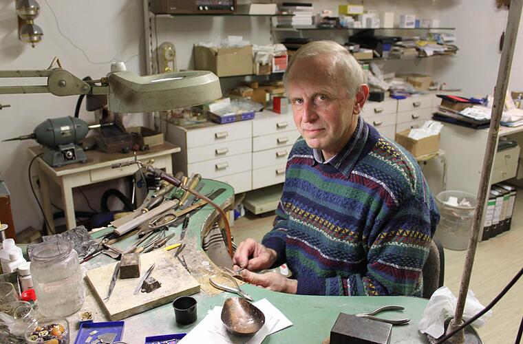 In den Jahren nach der Geschäftsgründung standen Bestecke und Zinnwaren in den Regalen. Die Kunden ließen sich Ringe und anderen Schmuck nach Maß anfertigen. "Da waren schöne Stücke dabei", erinnert sich der gebürtige Oberfranke. Er selbst trägt nur eine schlichte, schwarze Armbanduhr. "Aber meine Frau trägt schon gerne Schmuck", sagt er und muss ein bisschen grinsen. Doch sie war es auch, die ihm die Augen geöffnet hat.