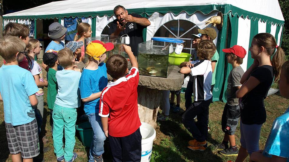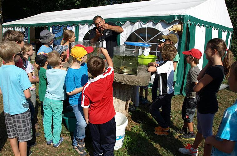 Nun aber wurde es spannend. Die Buben und Mädchen wurden in Kleingruppen von vier bis fünf Kindern, natürlich versehen mit Angeln und Keschern, unter der Aufsicht eines Vereinsmitglieds am Vereinsgewässer verteilt. Alle geangelten Fische wurden des Hakens befreit und in das Wasser zurückgeworfen.