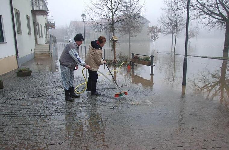 Gerhard Spitzschuh ärgerte sich ein wenig über die verspätete Auskunft der Behörden, dass der Wasserstand am Pegel Trunstadt, hinweisgebend für das wenige Stunden später zu erwartende Hochwasser vor der Haustüre, nicht ganz mit dem vor acht Jahren vergleichbar war. "2003 hatten wir am Pegel Trunstadt weit über sieben Meter", sagte er, "diesmal waren es 6,80 Meter und so waren auch die Prognosen. Da denkt man doch, dass es nicht so schlimm wird." Die Spitzschuh's hatten noch mal Glück. Das Wasser stand "Oberkante-Unterlippe" an der Treppe vor der Haustüre, die in letzter Sekunde mit Folien und Sandsäcken dicht gemacht worden war. Voll des Lobes waren Christa und Gerhard Spitzschuh deshalb auch über die Freiwillige Feuerwehr. "Vor acht Jahren hat sich niemand blicken lassen. Jetzt waren die mehrfach da und haben sich erkundigt und geholfen", sagte Christa Spitzschuh.