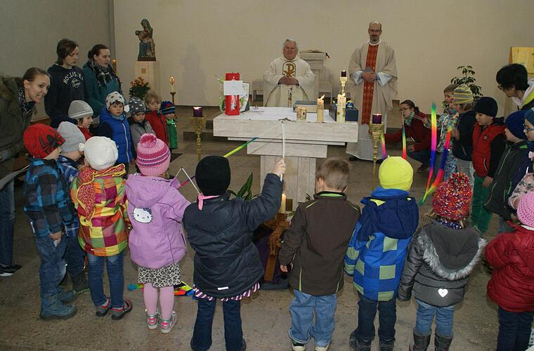 "Wir wünschen so viel Segen, wie Tropfen sind im Regen", sangen die Limbacher Kindergartenkinder am Donnerstagmorgen in der voll besetzten Dorfkirche in Limbach. Eigentlich wollte Pfarrer Ottmar Pottler nur im kleinen Kreis einen Dankgottesdienst zu seinem 55. Priesterjubiläums feiern, doch auch ohne eigenen Vermerk im Pfarrbrief hatte sich der Anlass herumgesprochen und aus der gesamten Pfarreiengemeinschaft Main-Steigerwald und früheren Gemeinden kamen Menschen, die den Gottesdienst mit dem beliebten Seelsorger feiern wollten.