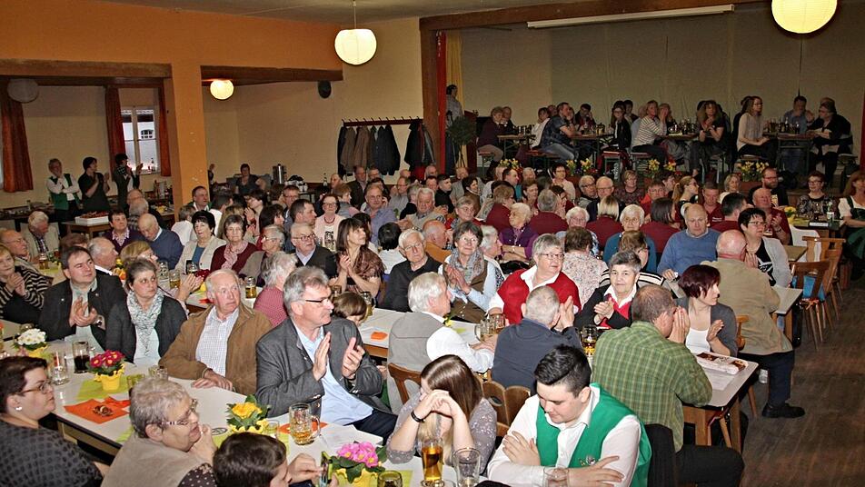 Im proppenvollen Reisenweber-Saal in Untermerzbach spielen die Gereuther und Pfarrweisdacher Musikanten auf.