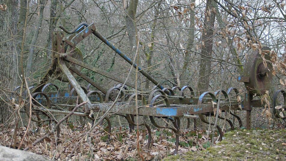4: Kopfschüttelnd registrierten die Bauausschussmitglieder, was so alles auf städtischem Grund abgestellt wird. Diese Egge ist offensichtlich schon lange nicht mehr in Betrieb.
