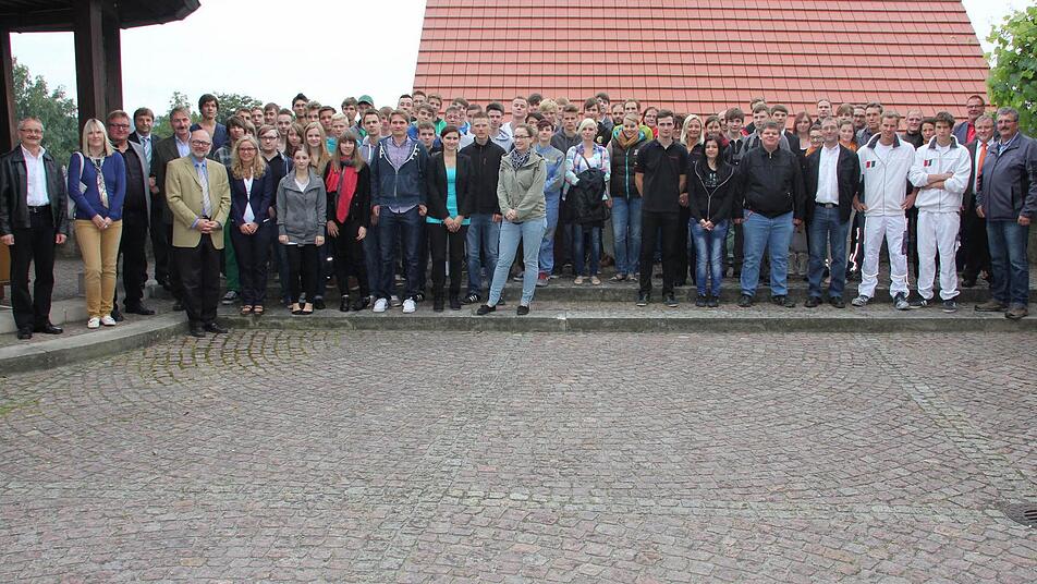 Zusammen mit 64 weiteren Berufsanfängern, die am Montag bei Eberner Firmen in den neuen Lebensabschnitt starteten, lauschten sie im Rathaushof beim Empfang von Stadt und Tourismus- und Werbegemeinschaft (TWG) den Empfehlungen von Bürgermeister Robert Herrmann (CSU) und TWG-Vorsitzendem Günter Dietz, die ihnen günstige Berufsaussichten prophezeiten. Bürgermeister Herrmann: "Wir haben fast Vollbeschäftigung. Es sind die jungen Leute, die Staat und Gesellschaft brauchen."