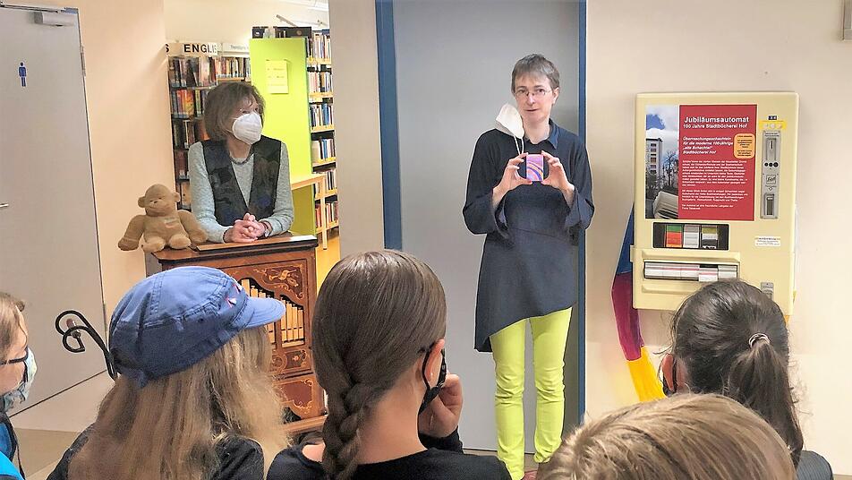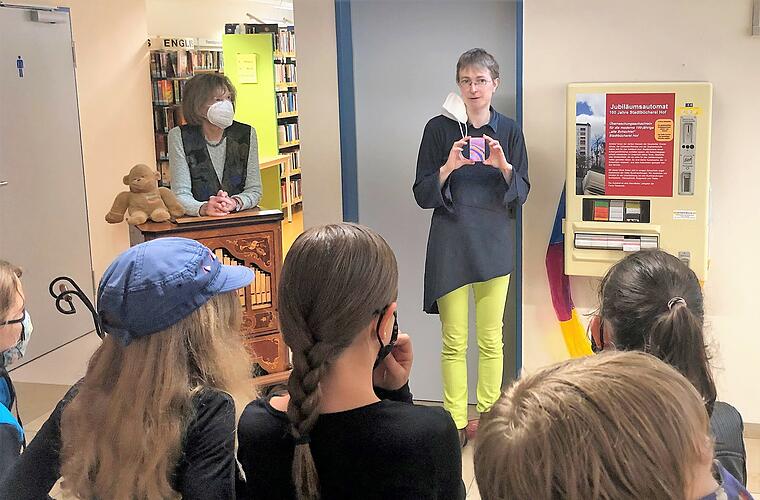 „Walle, walle, manche Strecke, dass statt Zigarette Wissen fließe und mit reichem vollem Schwalle unserm Geiste sich ergieße“ – mit dieser umgedichteten Version des „Zauberlehrlings“ wurde zur Enthüllung des Jubiläumsautomaten in der Stadtbücherei Hof ein umgebauter ehemaliger Zigarettenautomat beschworen. Die Stadtbücherei feiert das ganze Jahr ihr 100jähriges Bestehen – und genau dafür hatten vierte Klassen der drei Hofer Grundschulen sich unterschiedlichste Sachen für den Jubiläumsautomaten zum Befüllen ausgedacht. Die Sophienschule hatte kleine Texte auf Leporello geschrieben und die Schachteln außen bunt gestaltet. Die Neustädter Grundschule packte Schmetterlingswissen in die vorher aufwändig bepinselten Schachteln und die Eichendorff-Grundschule füllte im Werkunterricht entstandene buchbinderische Arbeiten in die Schachteln. Das teilt die Stadt Hof mit.