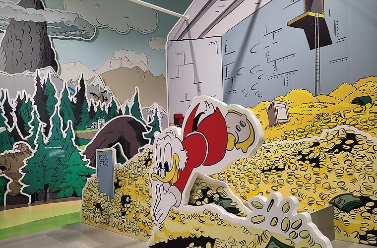Dazu gehören ein animierter Kurzfilm, der in die Geschichte des Comics einführt, das Talerbad in Onkel Dagoberts Geldspeicher und Daniel Düsentrieb in seiner Erfinderwerkstatt.