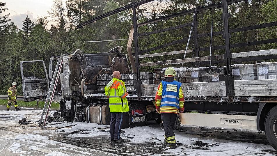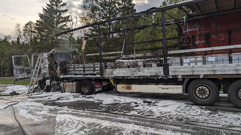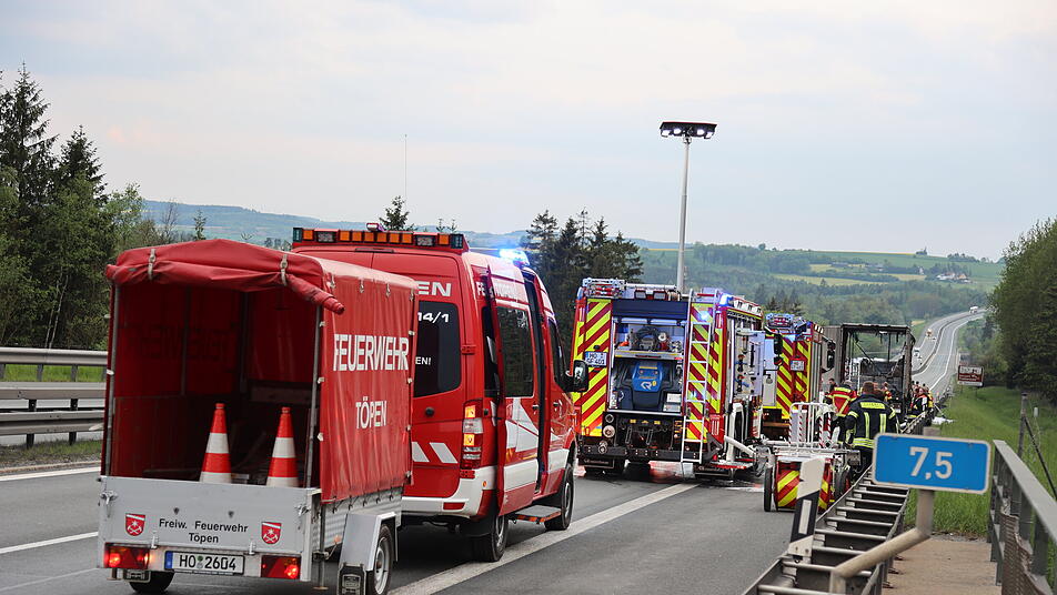 A72 bei Hof: Fahrer hört lauten Knall - Lkw brennt komplett aus, Trucker flüchtet mit persönlichen Sachen
