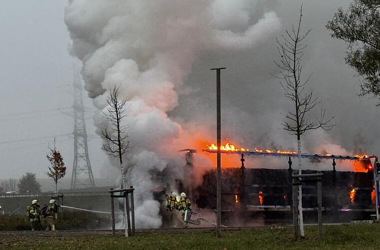 Lkw in Flammen: Trucker kann sich noch rechtzetig retten