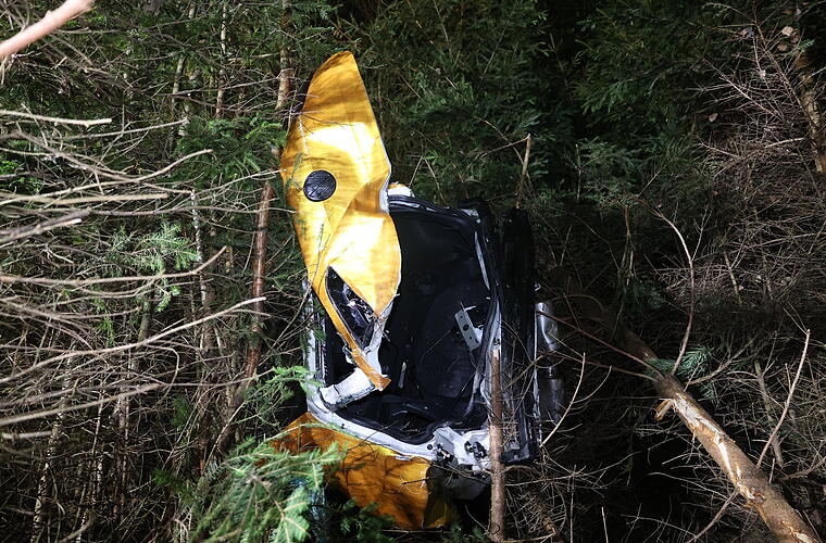 Zu einem schweren Verkehrsunfall mit zwei schwerverletzten Personen kam es am späten Donnerstagabend (23. März 2023) gegen 21.30 Uhr auf der A93 in Richtung Süden kurz vor der Anschlussstelle Schönwald. Der 36-jährige Fahrer eines goldenen hochmotorisierten Wagens überholte in einer langen Linkskurve mit hoher Geschwindigkeit ein anderes Fahrzeug verbotswidrig rechts - das Manöver endete schließlich im Wald.