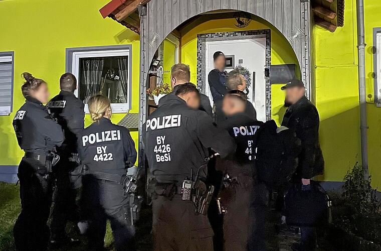 Die rund 50 Einsatzkräfte des BLKA, einer Hundertschaft und einer technischen Einsatzeinheit der Bayerischen Bereitschaftspolizei stellten bei der Durchsuchung am Dienstagmorgen (26. November 2024) in Münchberg Unterlagen sicher. Waffen oder Munition seien jedoch nicht gefunden worden.
