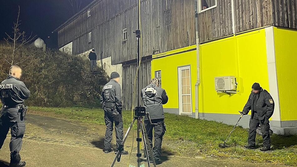 Ermittler durchsuchen ein landwirtschaftliches Anwesen in Oberfranken. Der Tatverdächtige steht im Verdacht, auf dem Schwarzmarkt Geld verdient zu haben. Handelt es sich bei dem Gebäude um ein Lager für Waffen und Munition?