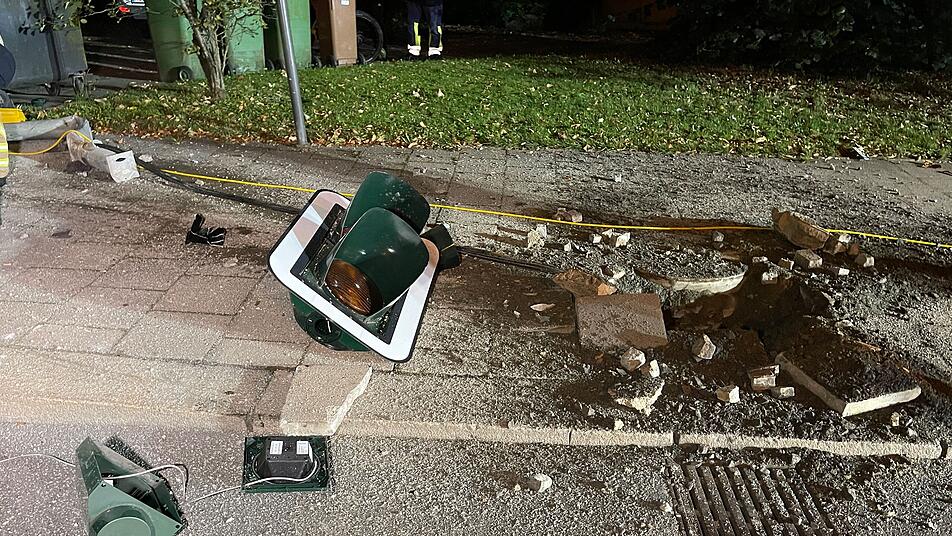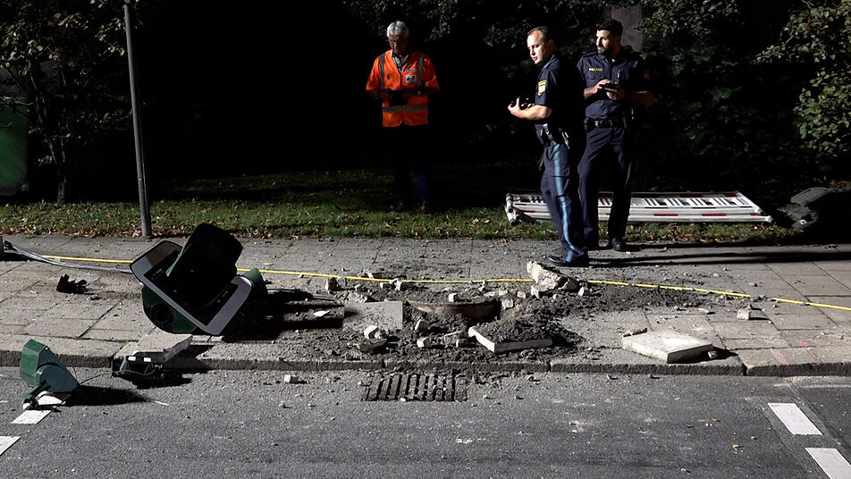 Dort kollidierte der Wagen mit einem Ampelmast. Durch den wuchtigen Aufprall wurde dieser aus dem gepflasterten Gehweg gerissen und blieb einige Meter später in einem Baum hängen. Der Audi kam stark beschädigt auf der Straße zum Liegen. Der Fahrer zog sich leichte Verletzungen zu. Nachdem er die Fahrer der anderen beiden Fahrzeuge über seinen Unfall verständigt hatte, kamen diese an die Unfallstelle zurück.