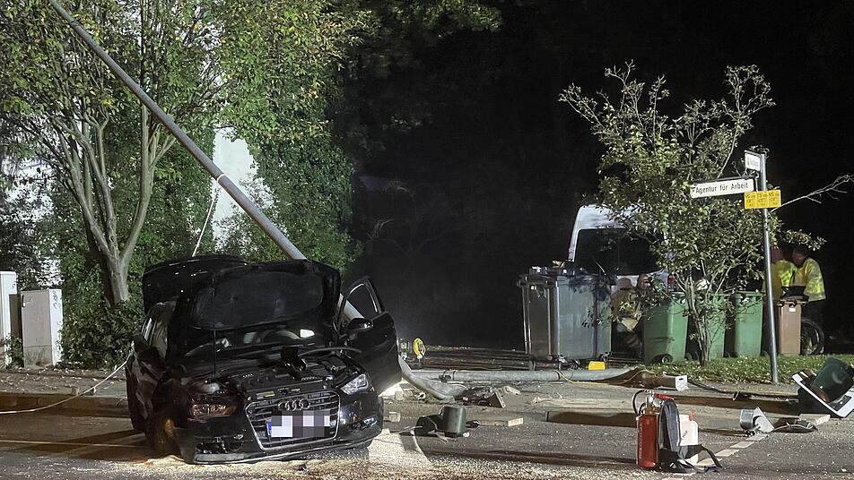 Illegales Autorennen in Hof - Raser kracht gegen Amplemast und wird verletzt