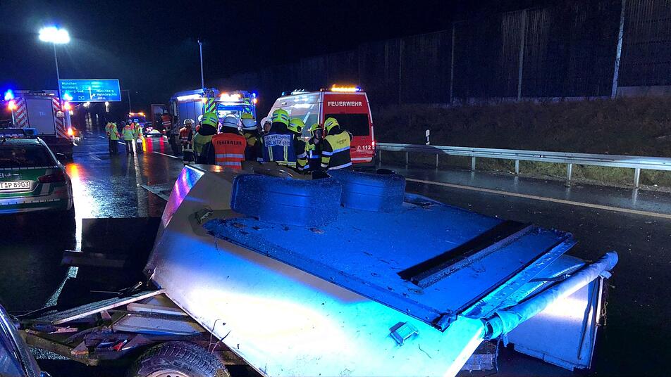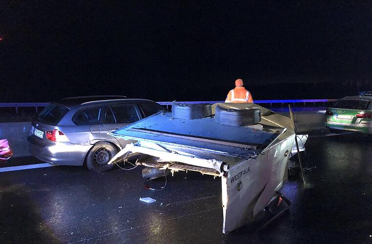 Sowohl der Fahrer des Audi, als auch sein 21-jähriger Beifahrer sind leicht verletzt worden. Der Pferdeanhänger hatte sich zwischenzeitlich von der Anhängerkupplung gelöst, trudelte schleuderte über die Autobahn und wurde von einem BMW erfasst, der von einem 59-jährigen Mann gesteuert wurde.