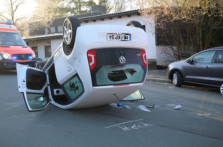 Die Fahrerin saß zum Unfallzeitpunkt im Auto. Durch die Wucht des Zusammenstoßes wurde das Auto des Unfallverursachers in Richtung Fahrbahnmitte geschleudert und überschlug sich. Der Mann erlitt dabei schwere und die Frau leichte Verletzungen. Beide mussten in ein Krankenhaus gebracht werden. Die Polizei schätzt den entstandenen Sachschaden auf rund 12.000 Euro.