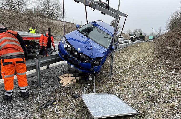 Das Auto schlitterte einige Meter weiter und blieb schließlich auf der Leitplanke stehen.