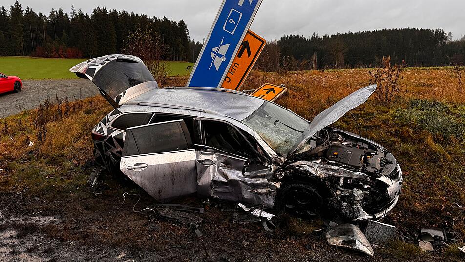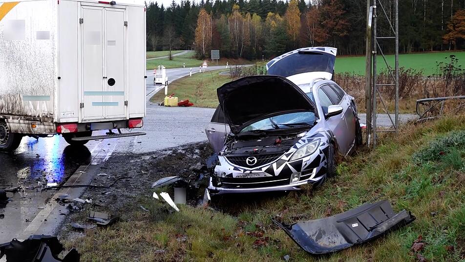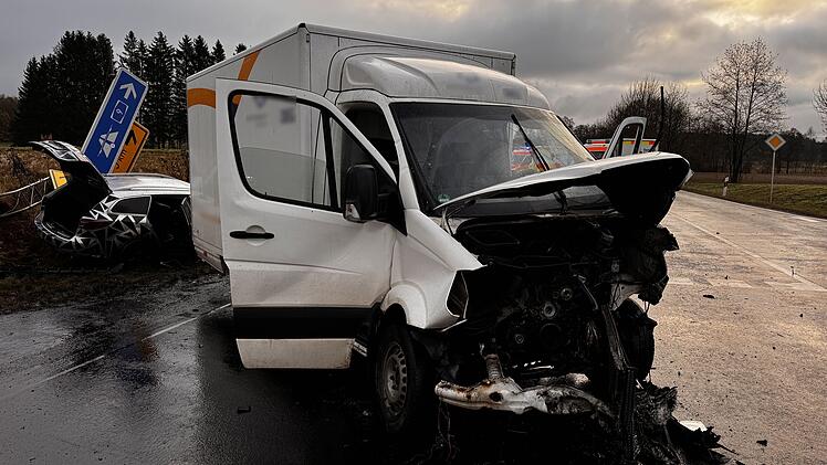 Ein Fahrer will im Kreis Hof auf eine Straße einbiegen und kollidiert dabei frontal mit einem Fahrzeug. Von den insgesamt vier Insassen werden zwei verletzt.