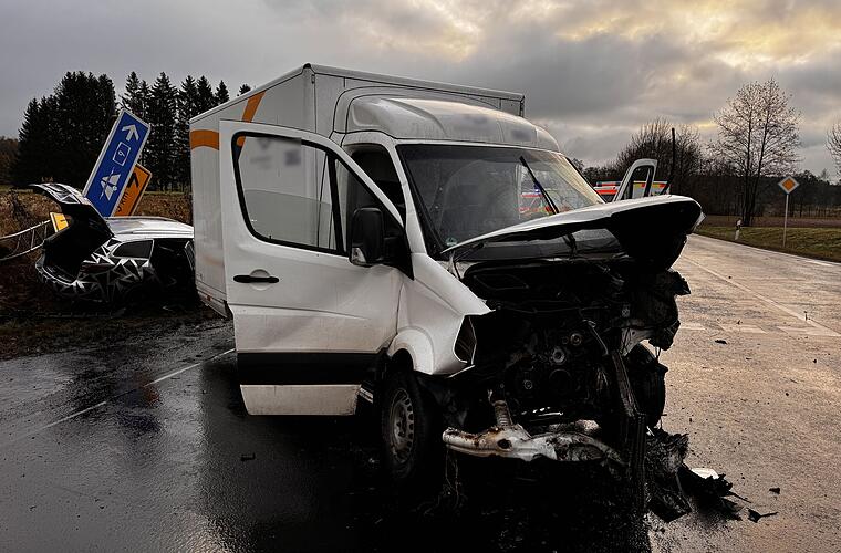 Ersten Erkenntnissen zufolge habe eines der Fahrzeuge vom Gelände der Firma kommend nach links auf die Straße abbiegen wollen und ein von links kommende Fahrzeug übersehen. Dadurch kam es laut einem Feuerwehrsprecher zu einer frontalen Kollision. Bei welchem Fahrzeug es sich dabei um den Kleintransporter handelte, war zunächst nicht klar.