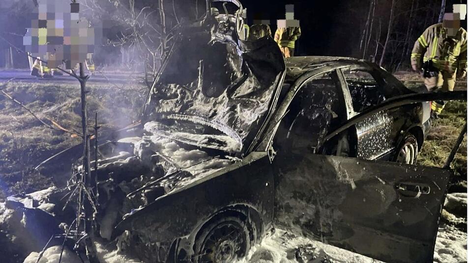 Glück im Unglück hatte ein 19-Jähriger aus dem Landkreis Hof, dessen Fahrzeug nach einem Unfall fast vollständig ausbrannte.