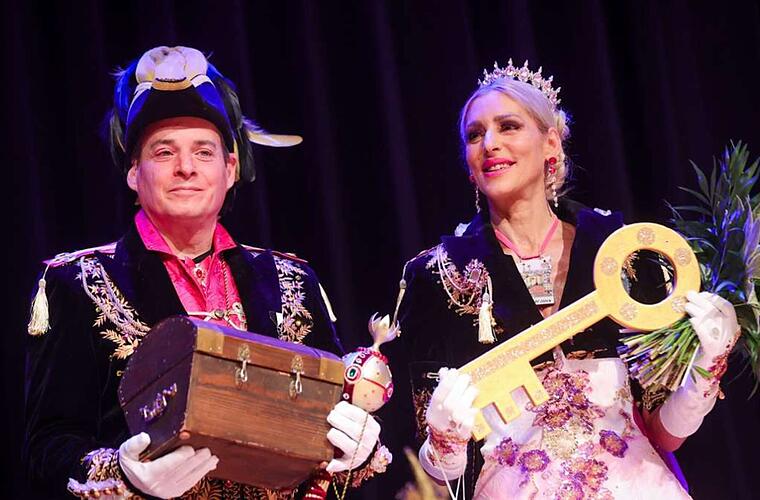 Mit der Inthronisation übernimmt das Hofer Prinzenpaar die Herrschaft. Damit verbunden wurden den beiden der Rathausschlüssel und die Stadtkasse übergeben. Diese bleiben bis Aschermittwoch im Besitz der Karnevalisten.
