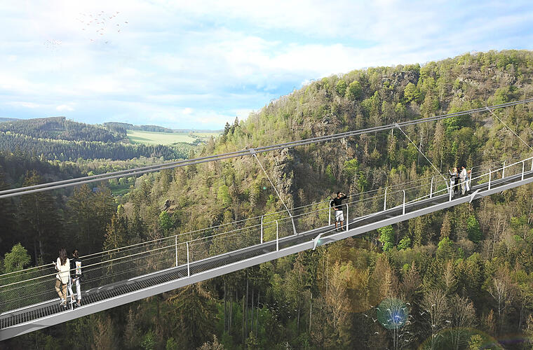 Die beiden Frankenwaldbrücken wären, falls sie gebaut werden, die längsten Fußgänger-Hängebrücken der Welt. Eine soll etwa einen Kilometer lang sein, die andere knapp 400 Meter. Sie sollen das landschaftlich attraktive Höllental zwischen der Stadt Lichtenberg und der Gemeinde Issigau im Landkreis Hof überspannen und zahlreiche Touristen in den Frankenwald locken. Ende November 2024 hatte der Hofer Kreistag mit 38 zu 20 Stimmen beschlossen, die Planungen der Frankenwaldbrücken weiter voranzutreiben. Nach der Abstimmung hatte der Bund Naturschutz angekündigt, gegen das Projekt zu klagen, sobald der Bebauungsplan vorliege.