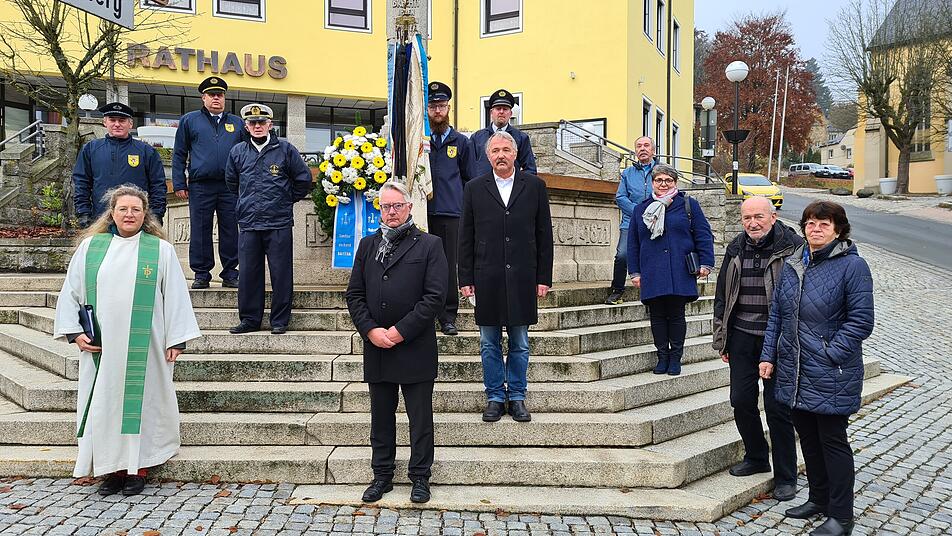 Im Rahmen eines evangelischen Gottesdienstes gedachte der Bürgermeister der Stadt Helmbrechts in einer Ansprache den Opfern von Kriegen und Gewalttaten sowie den Toten durch die Corona-Pandemie.