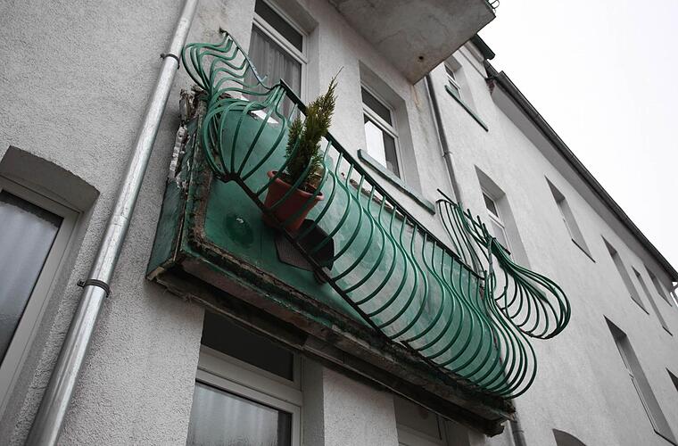 Horrorszenario für ein Ehepaar aus Hof: Als die beiden Bewohner auf ihren Balkon im ersten Stockwerk in der Luitpoldstraße treten, bricht dieser plötzlich ab. Nur das Stahlgeländer kann ein noch größeres Unglück verhindern.