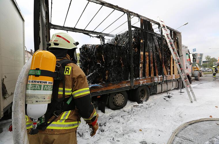 Ein mit Altpapier beladener Lkw hat am Freitagvormittag in Hof gebrannt. Der Fahrer rettete sich ins Freie. Es kam zu erheblichen Verkehrsbehinderungen.