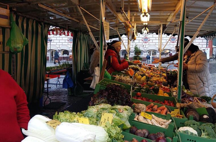 Ab dem 11. Januar sollen viele Stände des Hofer Wochenmarkt "vorgezogen" werden, erklärt die Stadt Hof auf ihrer Webseite. Sie befinden sich während der Wintermonaten rund um das Rathaus, sowie in der Ludwigstraße. Der Maxplatz, wo der Wochenmarkt üblicherweise stattfindet, sei für den Markt in den Wintermonaten schlichtweg zu groß, erklärt die Stadt. Denn im Winter bieten weniger Händler ihre Waren an, der Platz wird nicht voll.