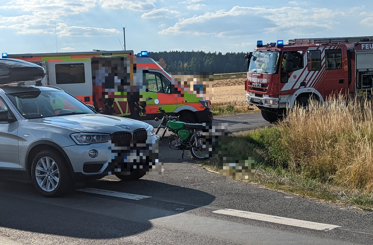 Am Sonntagabend (24. Juli 2022) musste ein Fahrer einer "Simson" mit dem Rettungshubschrauber in ein Krankenhaus geflogen werden, nachdem er mit dem Auto einer überholenden Fahrerin bei Töpen im Landkreis Hof zusammengestoßen war. Das berichtet die Polizeiinspektion Hof am Montag (25. Juli 2022).