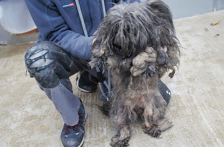 Viele Hunde seien verstört und kraftlos. Keiner der Hunde sei kastriert, berichtet Bujak aus Hof. Eine Hündin erwarte ebenfalls Junge. Am Tag des Gesprächs mit inFranken.de konnte das Team vom Tierheim Hof allen neun Hunden das schwere verfilzte Fell abnehmen. "Auf dem einen Bild denkt man ja, die Person hält einen Hund hoch, aber es ist nur das Fell", sagt Bujak. "Es ist Wahnsinn, furchtbare Zustände. Und die Füße stinken. Das bekommt man beim ersten Mal Waschen gar nicht alles weg. Wir haben schon viele Hunde auch aus dem Ausland gehabt, aber noch nie solche Hunde, die derart penetrant riechen."